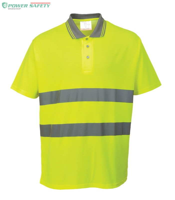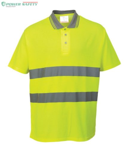 Lélegző Cotton Comfort jól láthatósági pólóing kontraszt színű gallérral és HiVisTex szalaggal.