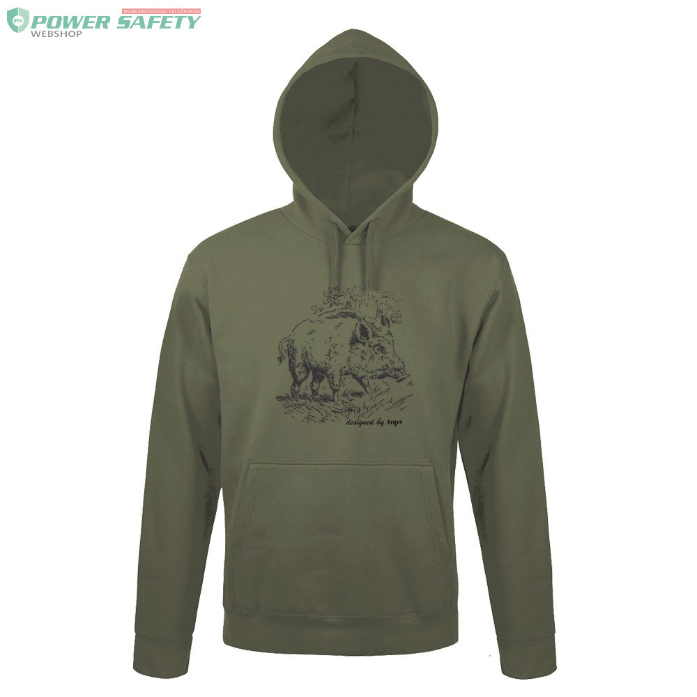 Kapucnis pulóver (vaddisznó mintával) 50% pamut 50% poliészter