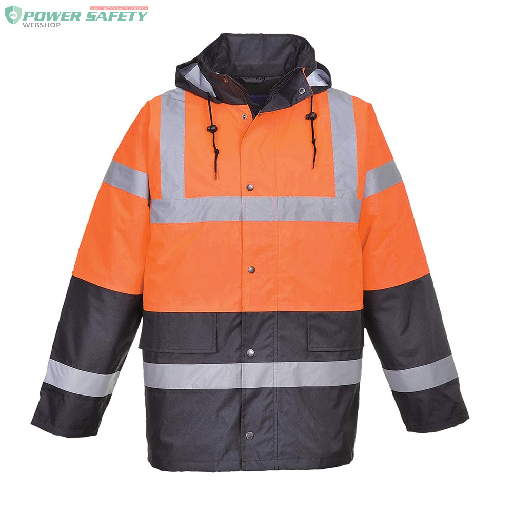 Kedvelt kontraszt színösszeállítású jól láthatósági kabát. 3 kontraszt színben elérhető. Teljesen vízálló kötött mandzsettával készül.