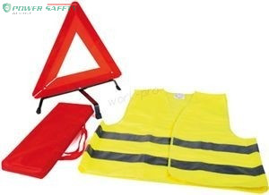 Közúti szett: mellény + elakadásjelző háromszög, hordtáskában piros/sárga