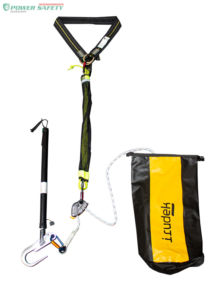 • Rögzítési pont: A mentőrúd meghosszabbításával rögzíthető a zuhanásgátló gyűrű, és a csatlakozó a sérült hevederéhez. Ideális korlátozott hozzáférésű és minimális áldozati együttműködést igénylő helyzetekben.