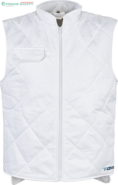 A mellény kialakítása jó légáteresztést és kiegyensúlyozott hőkomfortot nyújt, miközben szabad mozgást tesz lehetővé. A higiénikus fehér szín megfelel az élelmiszeripari és egyéb tisztaságérzékeny munkakörnyezetek elvárásainak.