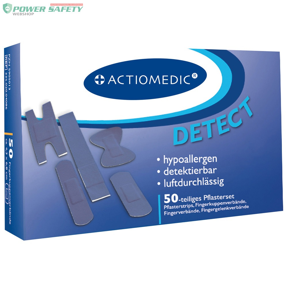 Hipoallergén és detektálható sebtapaszok, öt különböző méretben és formában, egyenként csomagolva. A sebtapaszok bőrbarát textilszövet anyagból készültek. 50 db kimutatható rugalmas sebtapaszt tartalmaz: 10 sebtapasz (19 x 72 mm), 10 sebtapasz (25 x 72 mm), 10 ujjtapasz (12 x 2 cm), 10 ujjvég tapasz (kb. 43 x 68 mm), 10 ujjköz tapasz (kb. 38 x 75 mm).