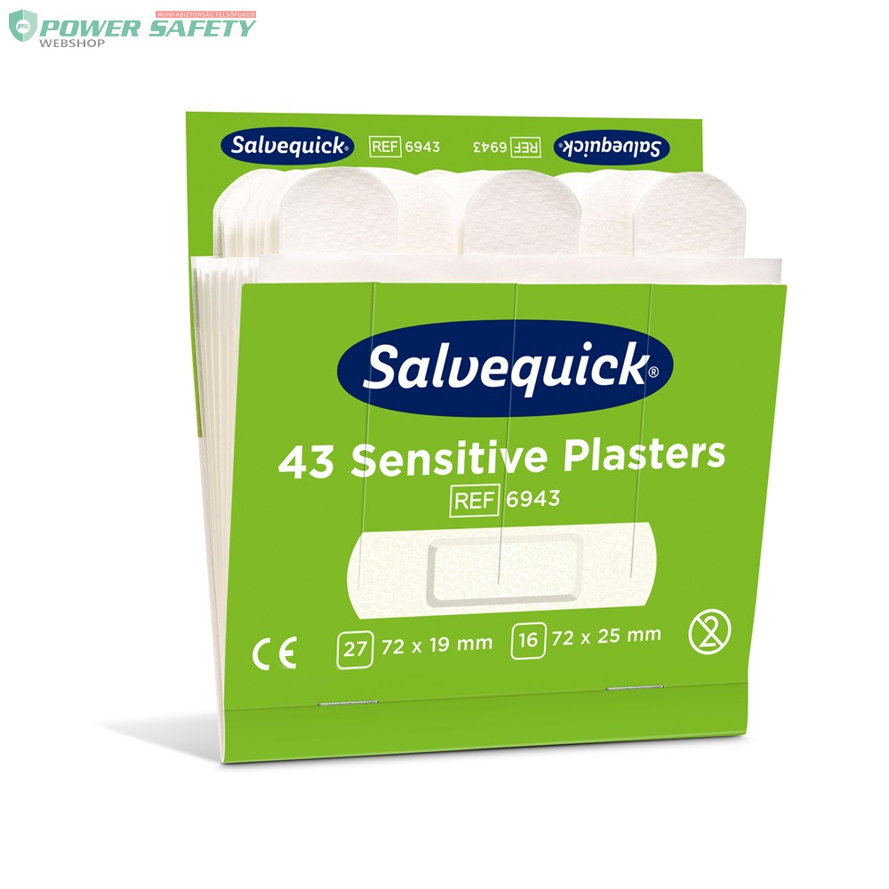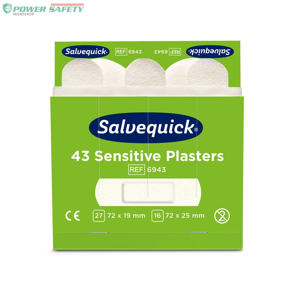 Prémium minőségű Salvequick Sensitive sebtapasz utántöltő készlet, kifejezetten érzékeny bőrre kifejlesztve. Bőrgyógyászatilag tesztelt. Könnyedén egy kézzel felhelyezhetőek, rugalmasak és kényelmesen használhatók. 43 db sebtapasz (27x 72 x 19 mm és 16x 72 x 25 mm). Eltarthatóság: 5 év.