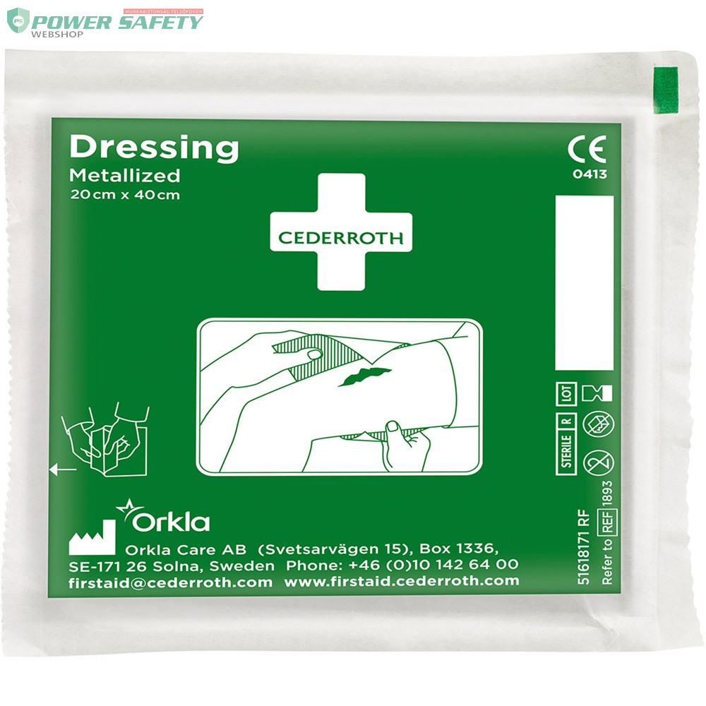 Nagyméretű steril fémbevonatú kötszer és egy latexmentes csőháló, amely a kötszer helyben tartására szolgál. A kötszer mindkét oldalán lévő nem tapadó réteg megakadályozza, hogy a sebbe tapadjon. Használat során a fémezett oldalt helyezzük a sebre.