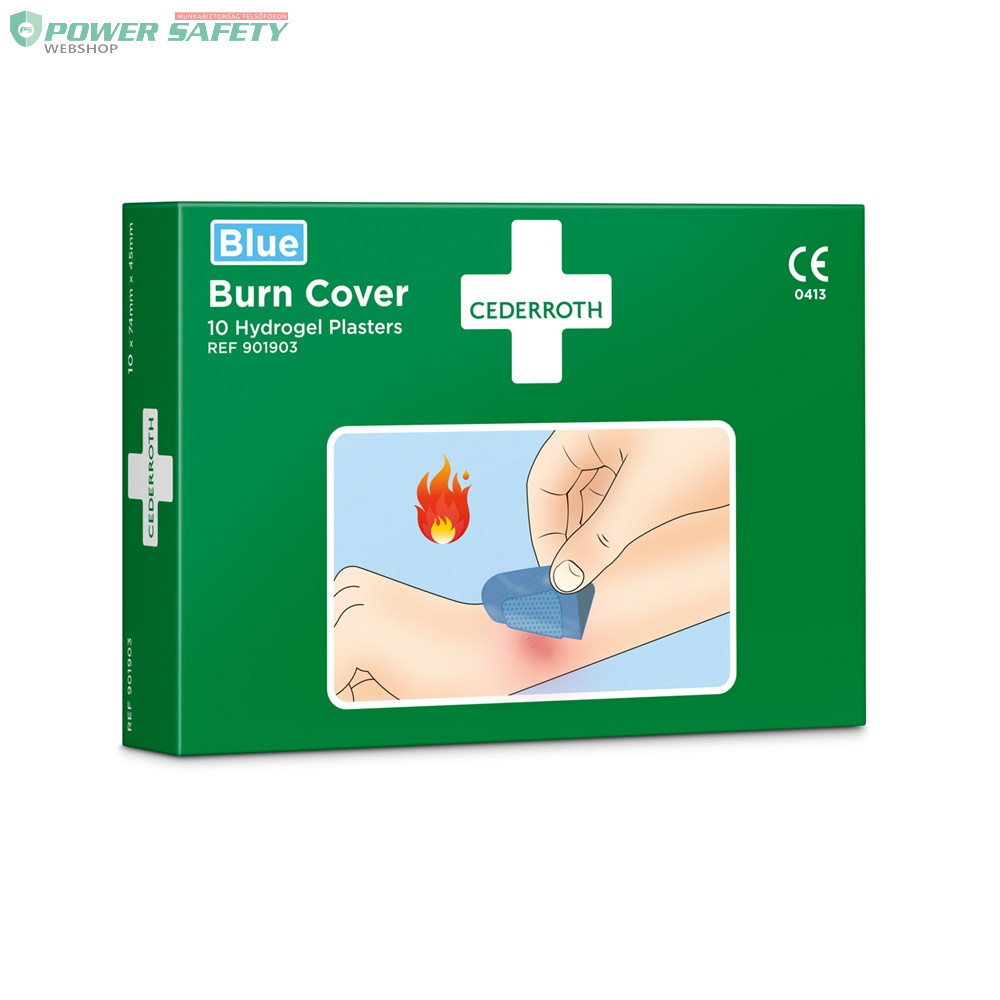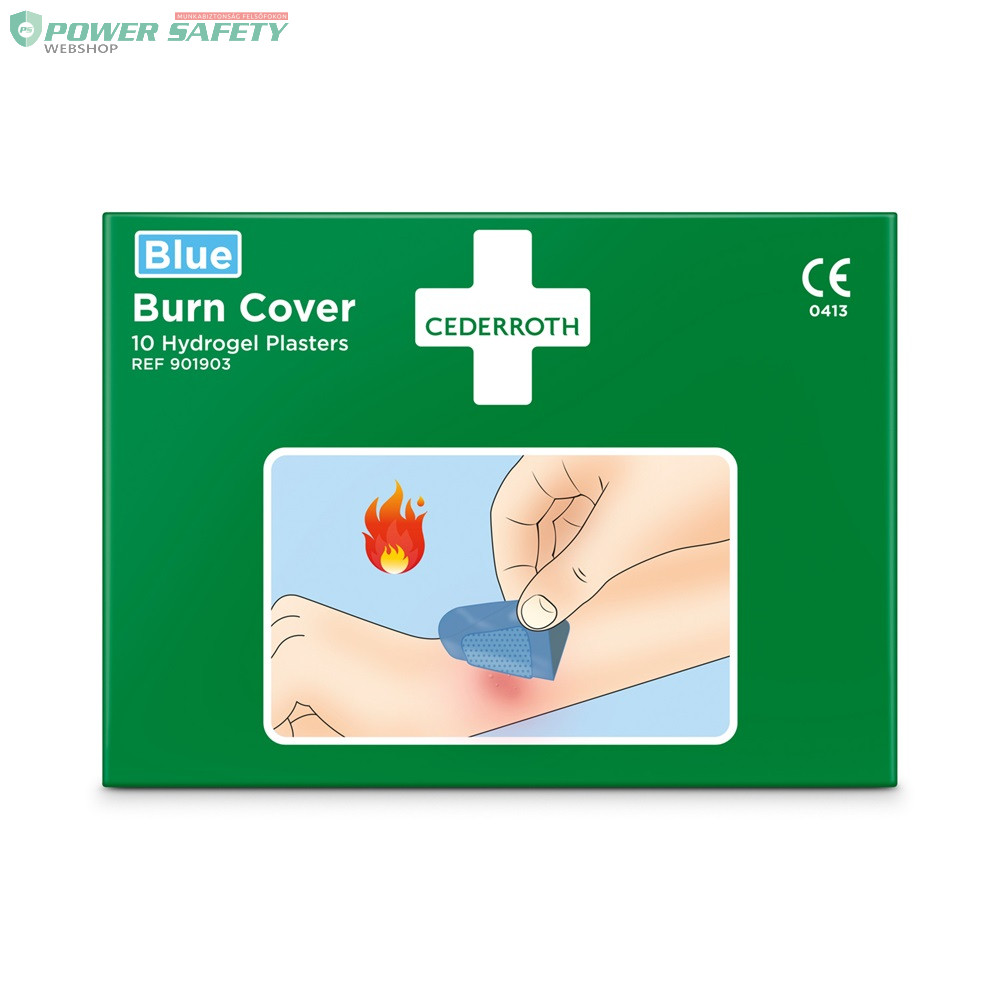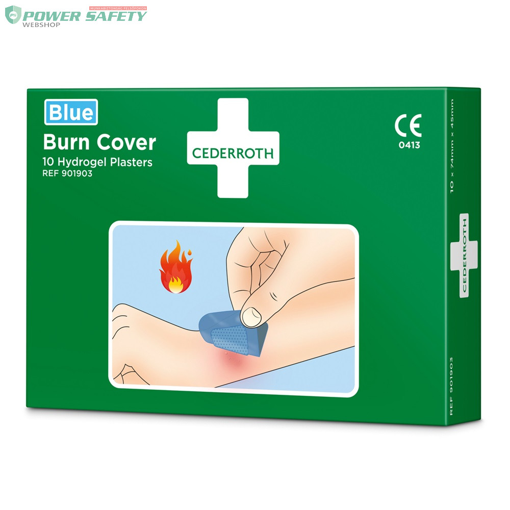 Hidrogél sebtapasz, amely védi és hűsíti az enyhébb égési sérüléseket. Az égési sérülésekre kifejlesztett sebtapasz kék, így élelmiszerfeldolgozó munkahelyeken is használható. A hidrogél nem ragad bele a sebbe. Vízálló és steril. Tartalom: 10 sebtapasz (74 x 45 mm).