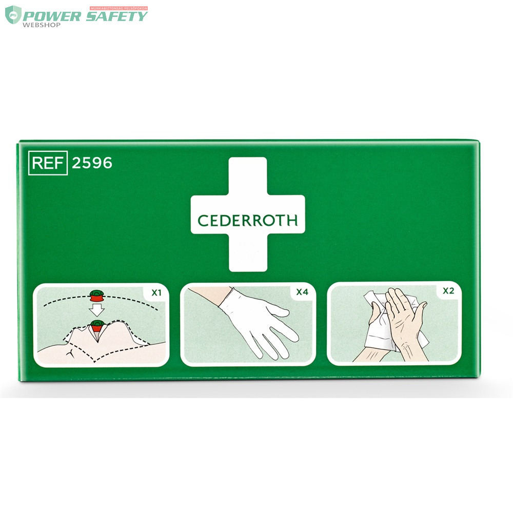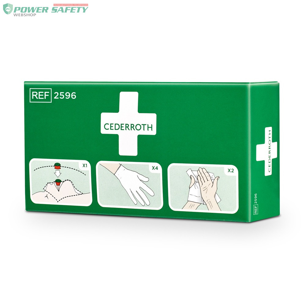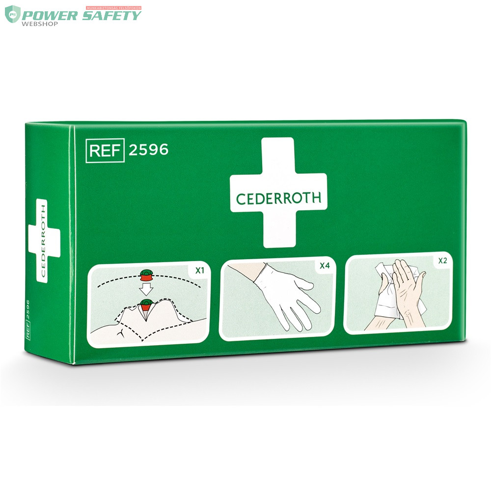 A szájból-szájba történő újraélesztés segédeszköze. Csökkenti a segítő és a sérült személy közötti érintkezés kockázatát. A Cederroth lélegeztető maszk egyirányú szeleppel van felszerelve. A műanyag kendő színes, egyértelmű utasításokkal ellátva. Tartalmaz egy védőmaszkot (egyirányú szeleppel felszerelve), 2 pár kesztyűt és 2 db Cederroth biztonsági kéztisztítót.