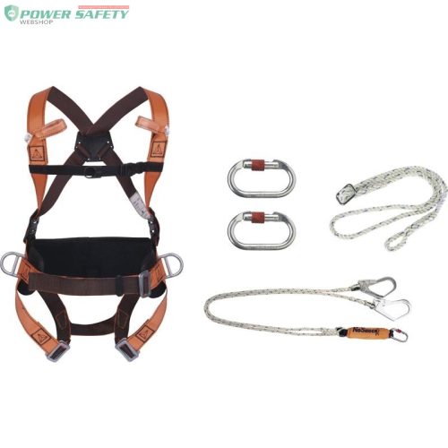 POSITIONNING & SCAFFOLDING - Készenléti zuhanásgátló szett : Zuhanásgátló testhevederzet 2 bekötési ponttal (hátsó - mellső). 2 szabályozó csat. 2 szabályozó oldalsó elem. Deréktámasztó öv (Ref. HAR14). Redukálóval állítható munkahelyzet-megtartó kötél. Hossz 1,1 métertől 2 méterig. Sodort kötél O 12 mm (Ref. EX021). Energiaelnyelő zuhanásgátló dupla sodort kötélből (Y) O 12mm. Hossz 2 m. 1 karabiner AM002, 2 kampó AM022 (Ref. AN211200CDD). 2 csatlakozó AM002.