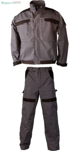 TOP022 munkakabát + TOP023 derekas nadrág szett, 100% pamut, szürke/fekete