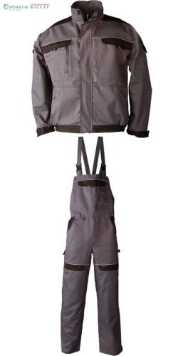 TOP022 munkakabát + TOP024 kantáros nadrág szett, 100% pamut, szürke/fekete