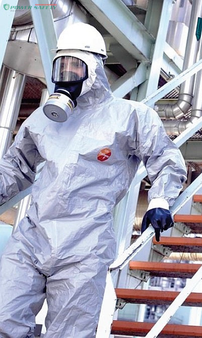 Tychem F szürke védőoverall nagynyomású vegyszerek, radioaktív részecskék, bioló