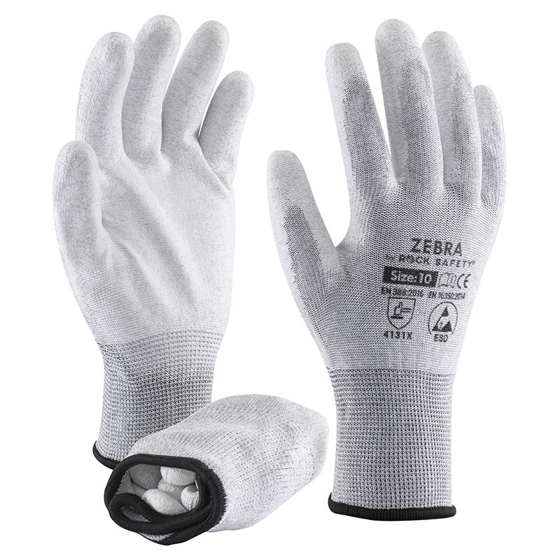 Karbonszálas poliészter ESD kesztyű PU tenyérmártással (ZEBRA-V)